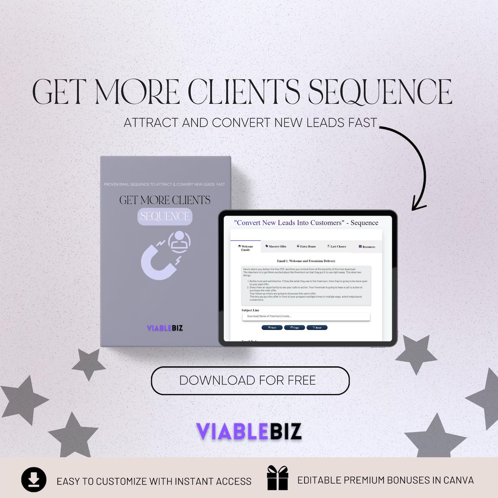 Get Clients Email Sequence, Email Marketing Templates, Welcome Emails, Email Scripts, Email Sequence, Lead magnet Email Series, Sales Email