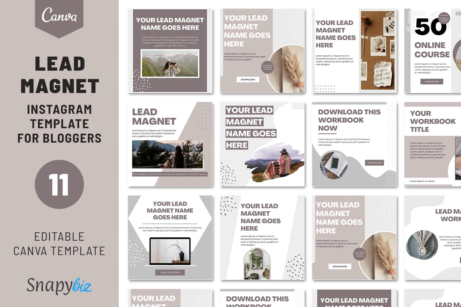 📦 You will receive 11 Lead Magnet Instagram Template files, fully editable in Canva and ready to customize! 🎨